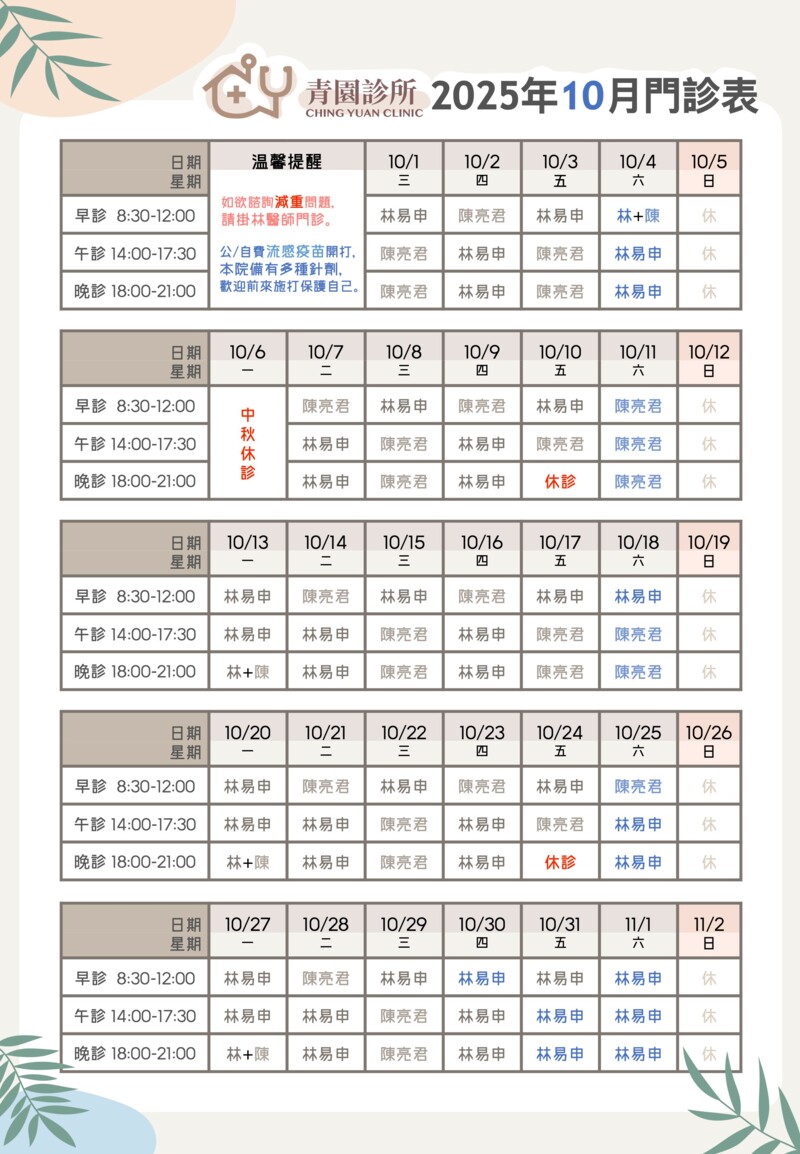 10/30-11/01 陳醫師出國開會 由林醫師代診