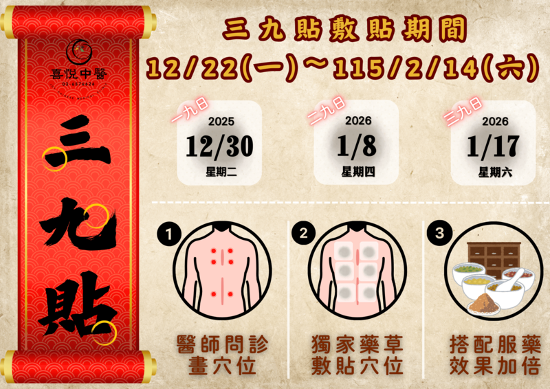 👍中醫埋線療法 持續性刺激穴道 促進氣血循環、疏通經絡、提高代謝及達到局部雕塑的功效🌻小針刀療法(微創針刀)直接鬆解肌肉沾黏處,疏通氣血、恢復關節運動功能、解決反覆疼痛的困擾,具有50倍針灸效果,有效提升生活品質💯12/22(一)~2/14(六) 冬季三九貼 增強抵抗力❣️ 12/25(四)行憲紀念日【正常看診】 ❣️