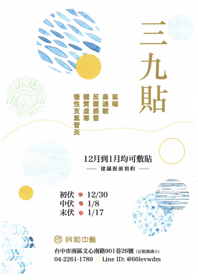 📣12/25(四)全院休診 📣三九貼開始囉~即日起可預約貼敷 📣115/01/01(四)全院休診