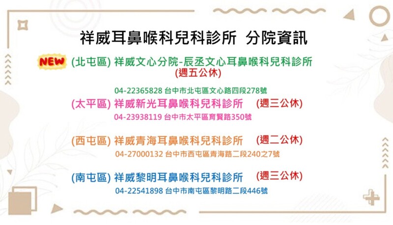 (北屯區) 祥威文心分院-辰丞文心耳鼻喉科兒科診所