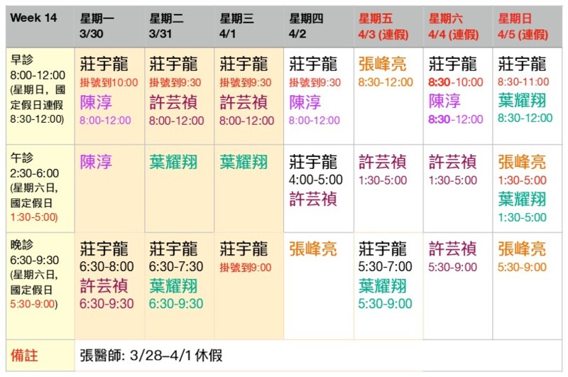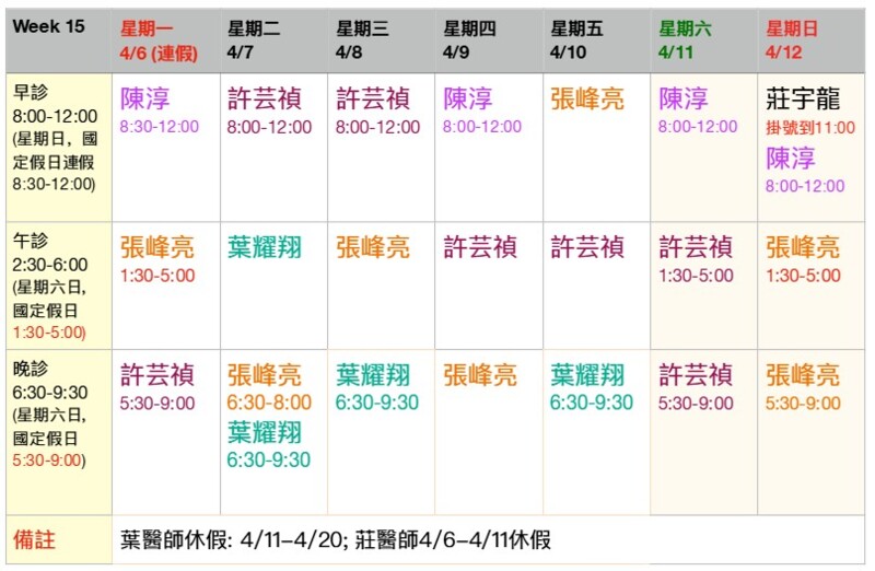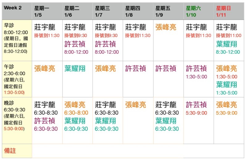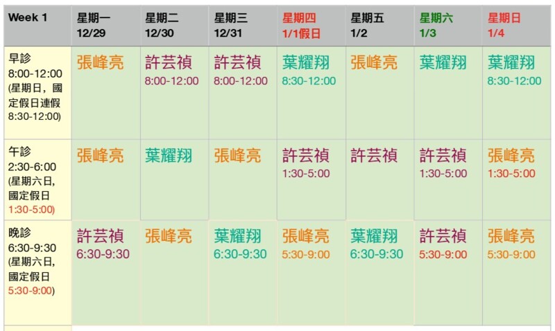 (門診表可能隨時變動,請前來時先行確認)