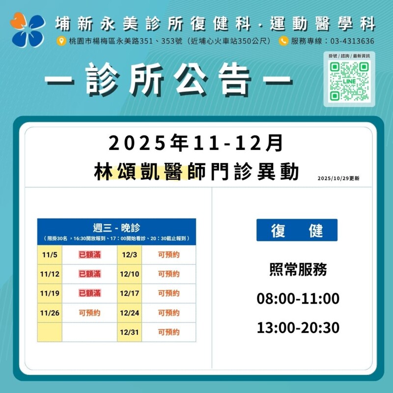 ※ 建議來診前可先致電詢問現場掛號狀況,若無法即時更新則以現場最新公告為準。