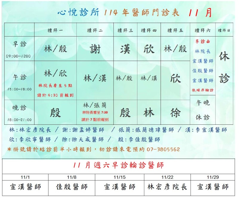 為提供更妥善醫療服務,本院將於8月4日(周一)起調整醫師門診表,請您留意時段變動,並提前預約,以免撲空喔。