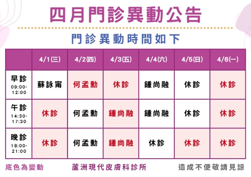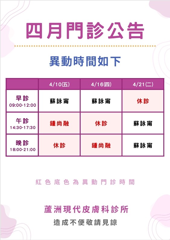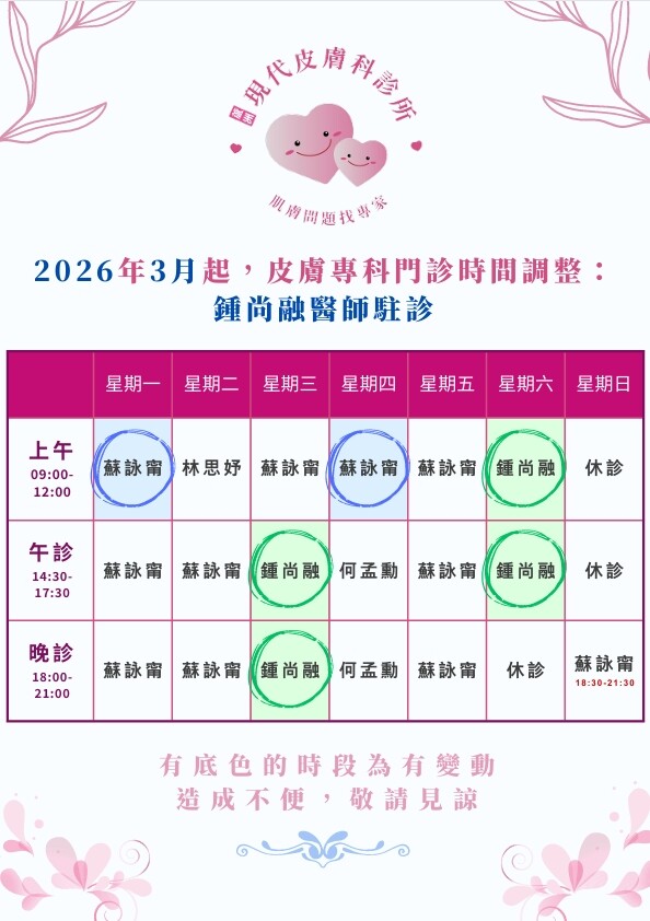 📢四月起新設立皮膚科健保門診,可直接於1樓櫃台掛號📢 🩺皮膚科由蘇詠甯皮膚專科醫師擔任院長為您服務🩺