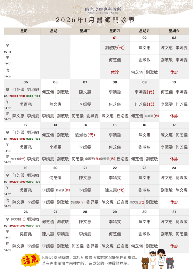 因配合藥局時間,本診所會依照當診狀況提早停止掛號。