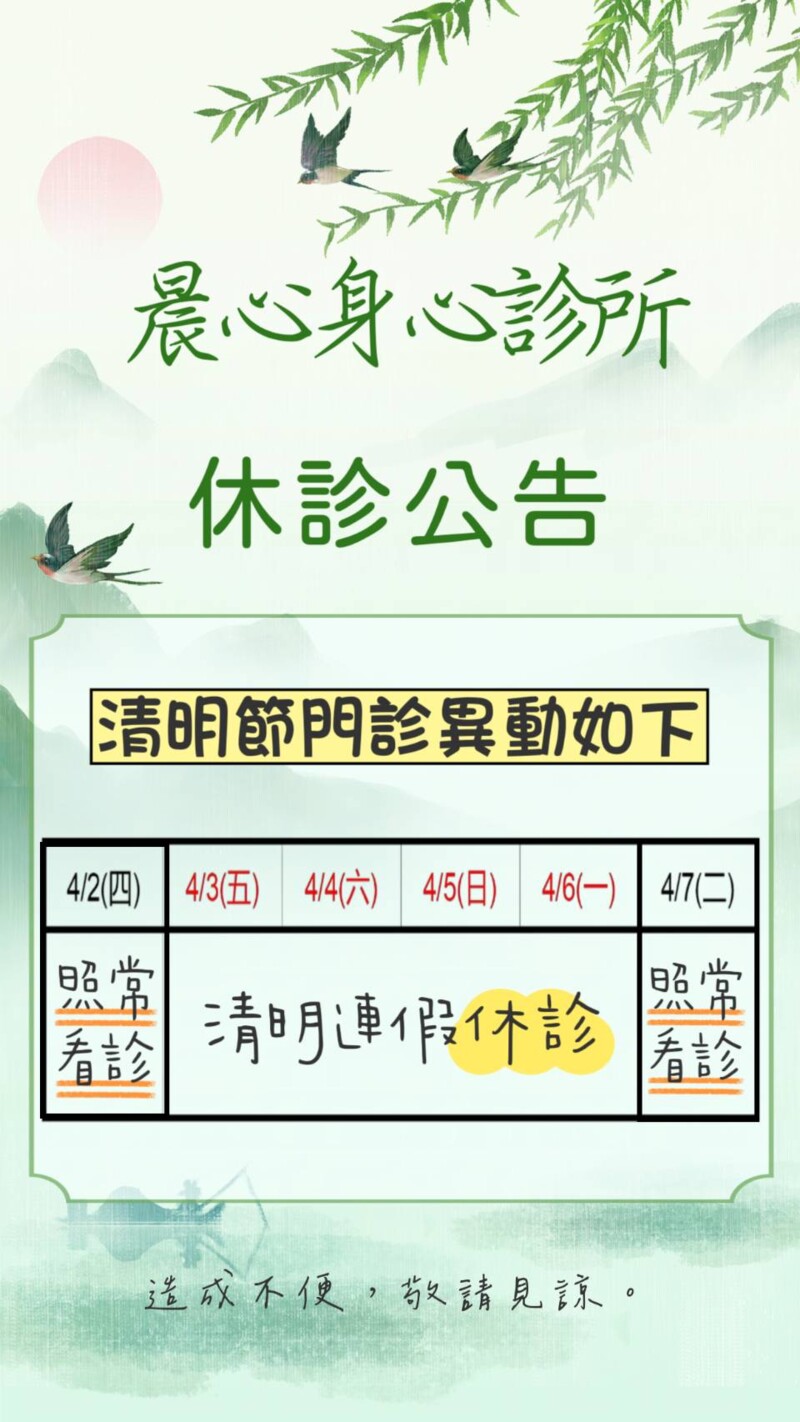 如致看診時間延誤,敬請見諒。