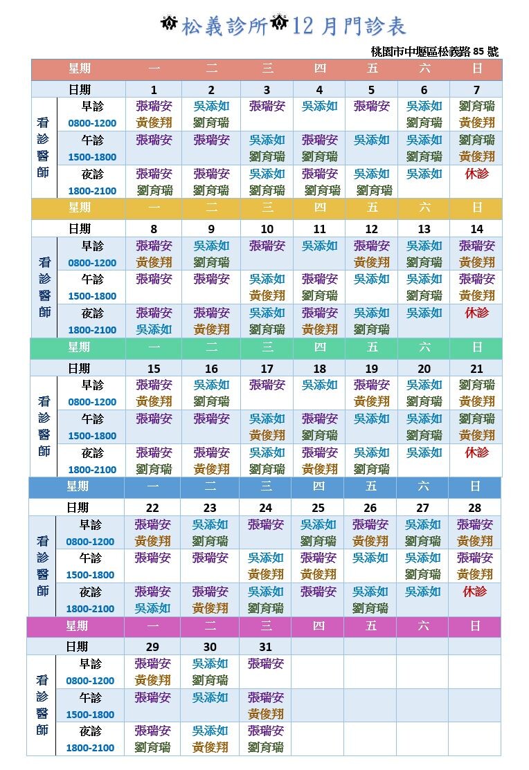 由張瑞安醫師、吳添如醫師、劉育瑞醫師、黃俊翔醫師為各位服務,看診科別慢性疾病、小兒疾病、耳鼻喉科疾病、皮膚疾病,包括常見之青春痘、濕疹、脂漏性皮膚炎、甲溝炎、病毒疣、雞眼、異位性皮膚炎、帶狀皰疹、足癬等。冷凍治療以及減重服務。兒童常規疫苗、流感疫苗、腸病毒疫苗、帶狀皰疹疫苗、HPV疫苗等