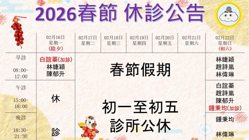 📢診所已開放網路預約, 診所LINE ID: ( @ent106 ) ~~ ☑︎ 過年休診:除夕下午開始至初五 。 ☺︎ 開工日:初六