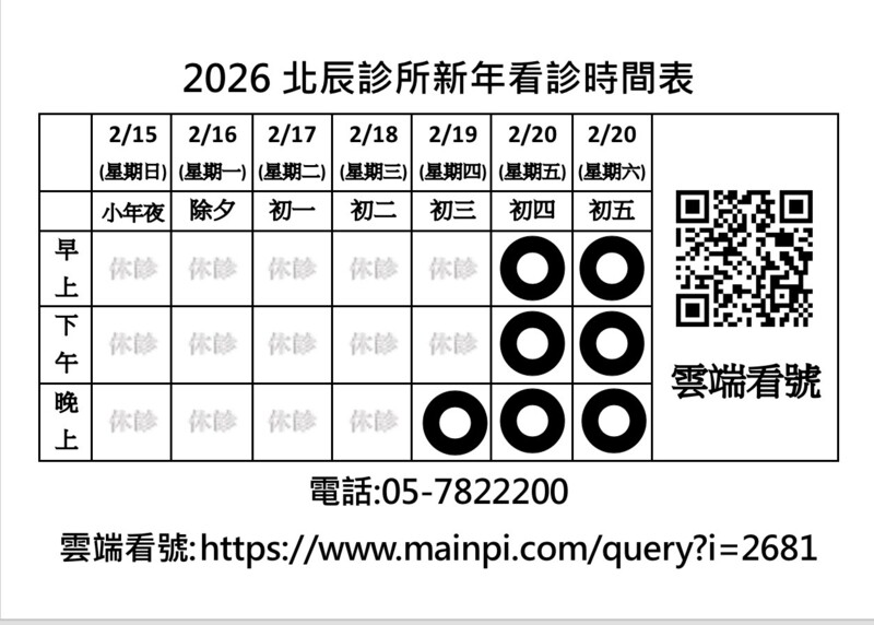 *本所臉書 https://www.facebook.com/p/%E5%8C%97%E8%BE%B0%E8%A8%BA%E6%89%80-100064032189649/?locale=zh_TW
