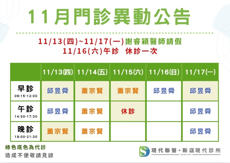 除了新店現代診所以外,三位醫師也有在台大醫院看診哦!
