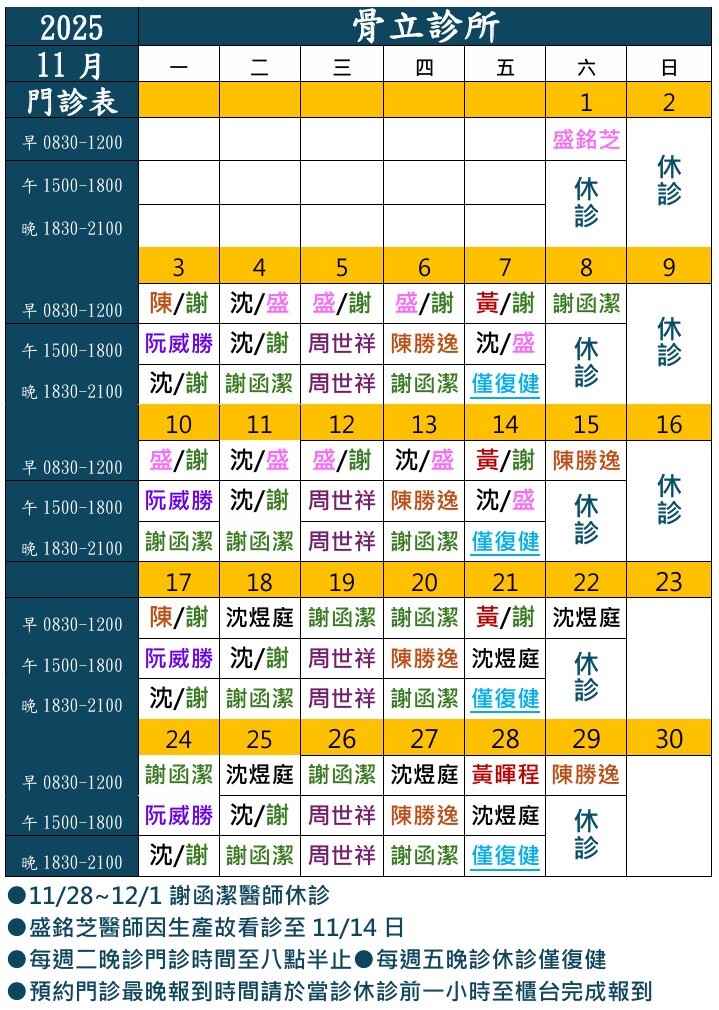 👨⚕️骨立診所公告🩺預約門診最晚報到時間請於休診前一小時報到,逾時者不保留預約,感謝配合🙂 ☎️(06)3020726