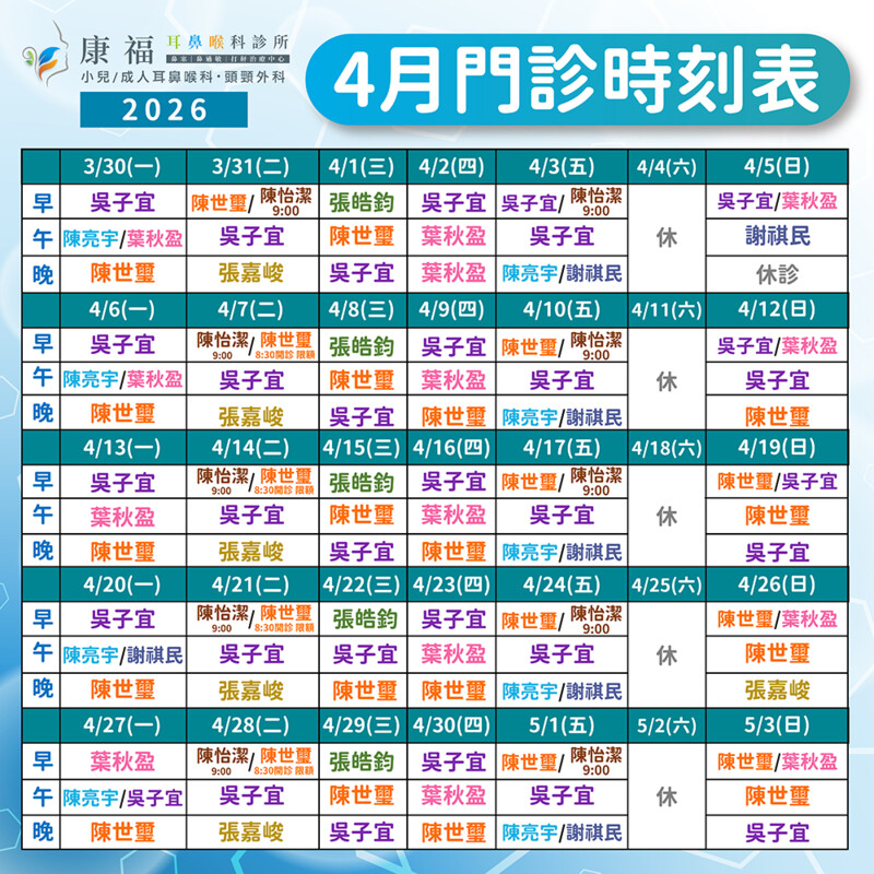 ★ 最新門診時間表 ★