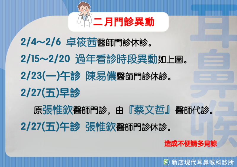 ✨最新消息✨ 115年2月起特聘卓筱茜醫師為大家服務👍 本院提供免費成人健康檢查、公費流感疫苗👍👍 本院提供新冠快篩、流感快篩、腺病毒及呼吸道融合病毒(RSV)快篩👍👍