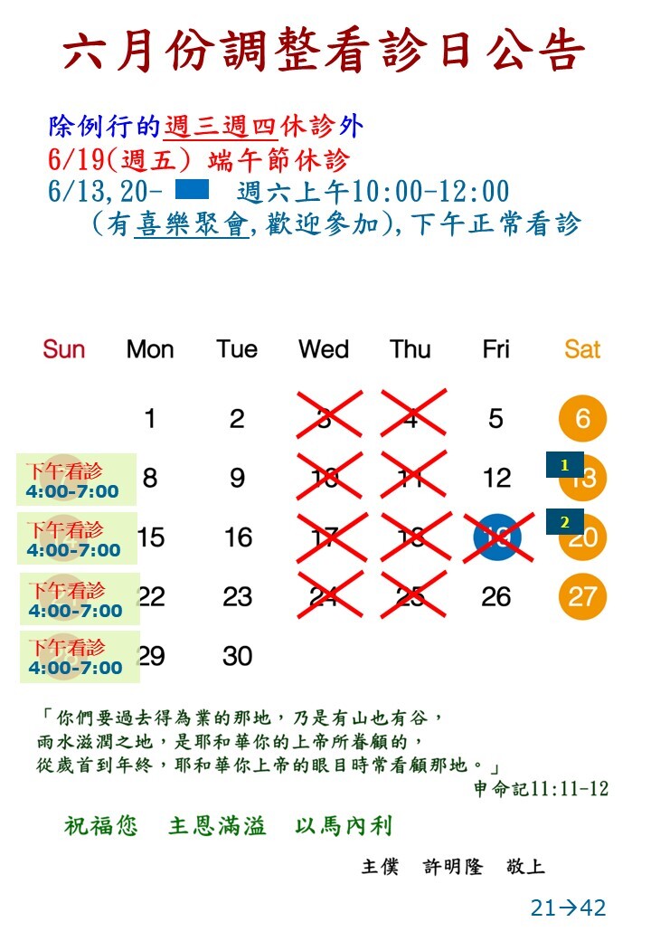 每月的臨時調整看診日請參見下表