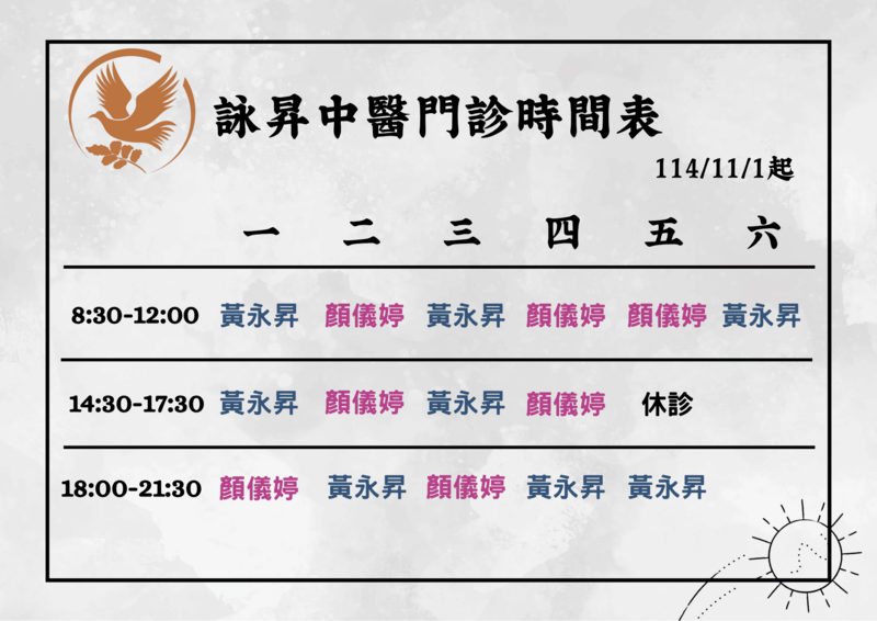 📣敬請於門診結束前15分鐘報到:早上【11點45分】前、下午【17點15分】前、晚上【21點15分】前