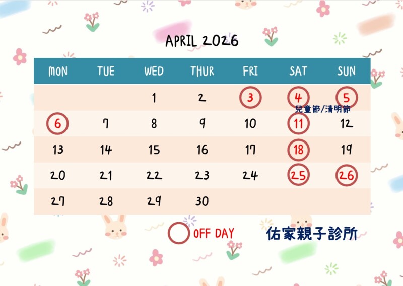 2026/04~彈性休診日期如下,歡迎諮詢🤩🤩🤩