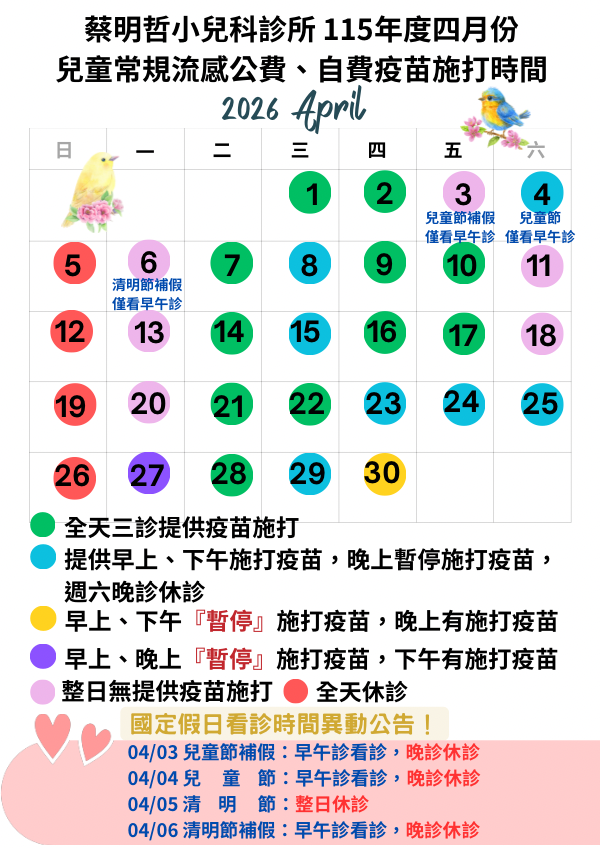 ✨電話預約請撥04-23338728✨現場掛號如遇預約人數較多需等候,可多加利用看診進度查詢,快到前6號請至現場等候,若遇過號人數較多需等候敬請見諒🙏 ✨預約掛號請提前6號報到並量體溫繳交健保卡才算完成報到。‼️若報到時已過號請看下方排序規則‼️ ⚠️有預約請注意最晚報到時間(請下拉網頁看時間表格),超過時間將自動取消預約。✅加官方LINE內建看診進度查詢。 ✅施打兒童常規疫苗請於有施打疫苗的診次(下拉網頁有疫苗月曆),並攜帶兒童手冊及健保卡報到,若需電話預約請告知要施打疫苗。