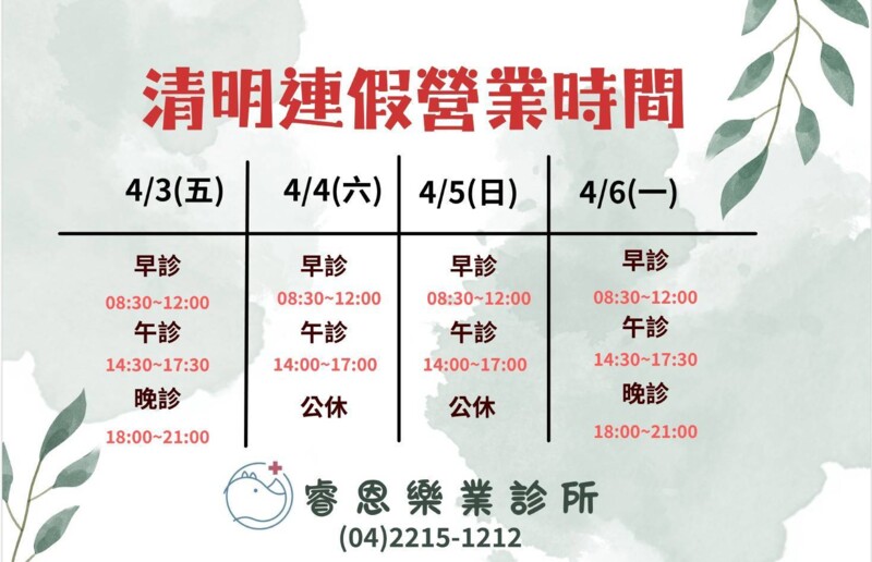 睿恩樂業診所 週六、日皆有醫師看診 歡迎入內看診~~ 一樓:本院提供全方位專業醫療服務,服務內容包含耳鼻喉、 頭頸、兒科方面、皮膚疾病、減重、除痣、客製化鼻塞及打鼾無線射頻術式手術的醫療諮詢及服務 二樓:睿恩樂業診所附設-緻優醫學美容中心,服務療程有:皮秒雷射-淨膚/除斑/除刺青/皮秒蜂巢、除毛系列、肉毒、玻尿酸、客製化營養點滴、醫美美療-粉刺調理、水嫩保濕、杏仁酸(痘痘調理) 歡迎您入店,我們有專業醫美醫師及美容師為您個人諮詢及服務 ***本院有 HPV 九價疫苗、帶狀皰疹【欣克疹】疫苗施打、還有Threads討論度很高的「猛健樂」瘦瘦針及減重諮詢 讓您減重沒煩惱 ; 節慶(婚宴)禮盒,歡迎立即預約醫美!