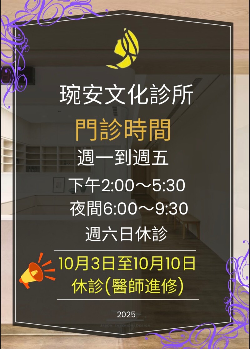特約門診 周五午間特約診 11:00~13:00 (僅供服務由診所端掛號之患者)