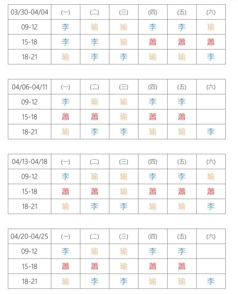 | 時段 | 看診時間 | 預約最後報到時間 |