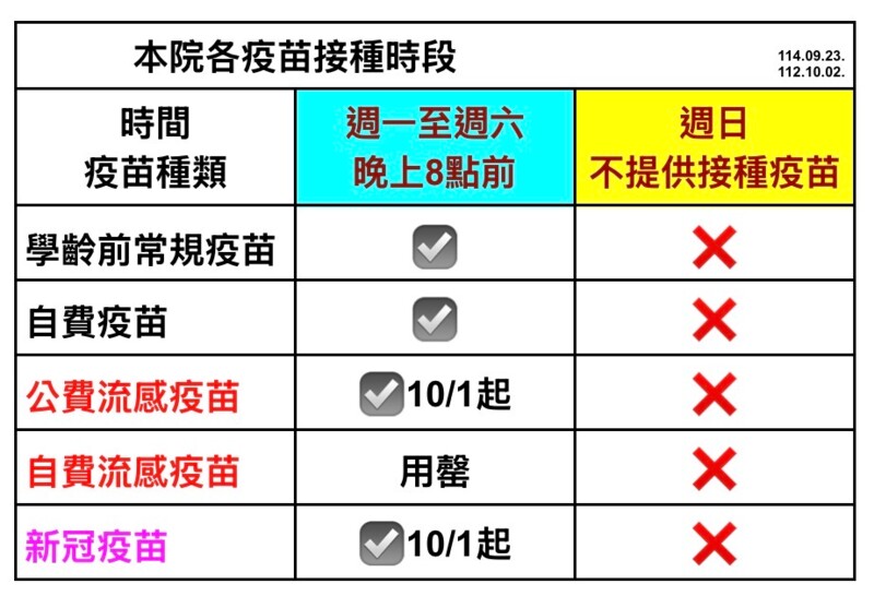 接種日期 : 10月01日星期三起
