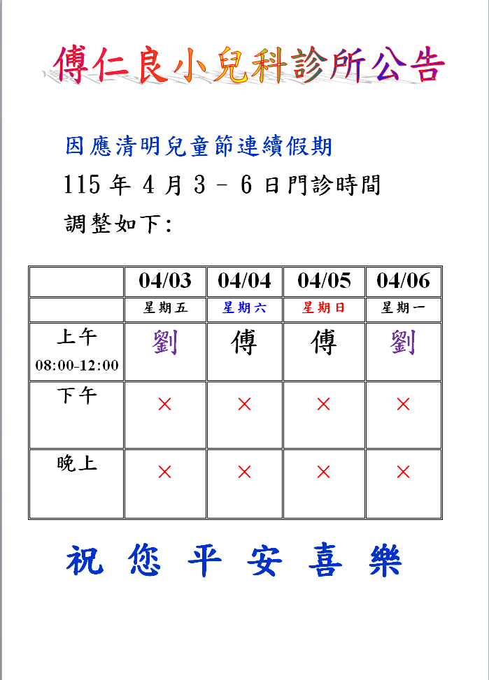 門診排班以及醫師請假公告: