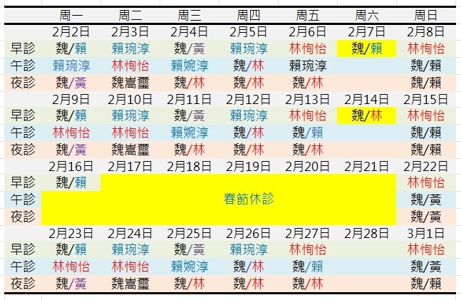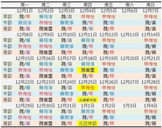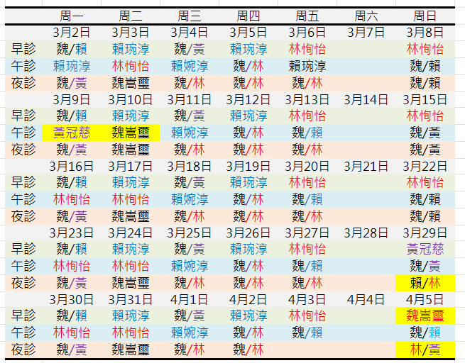 常規門診表
