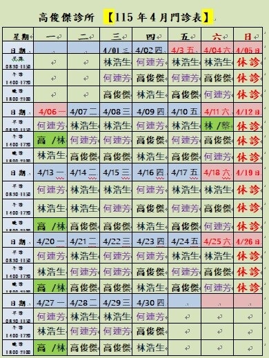 以上提供給家長參考~高俊傑聯合診所 關心您