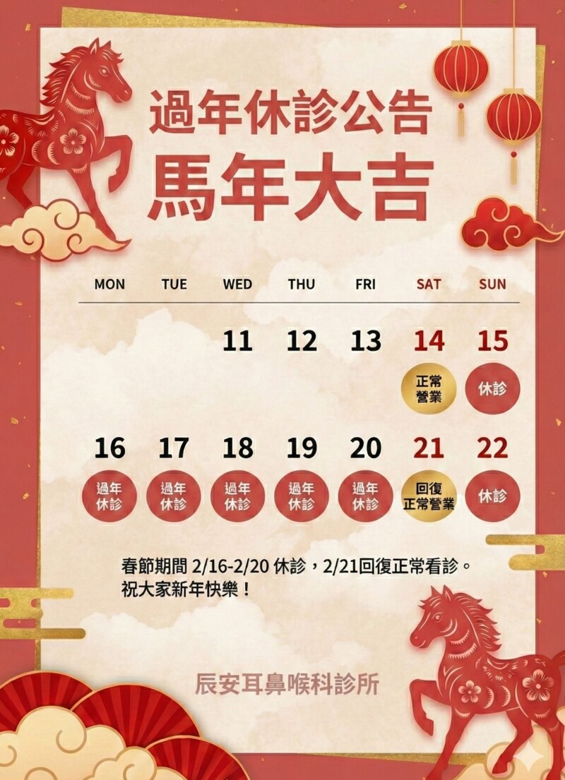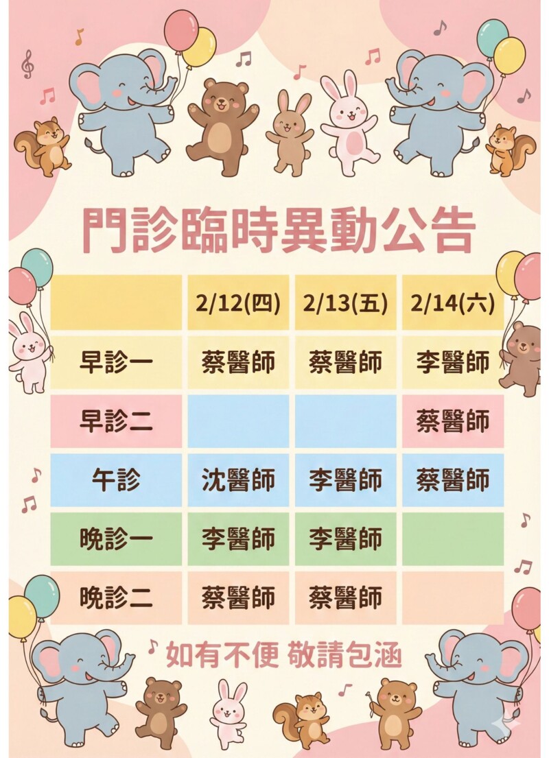 • 連續假期依照門診公告