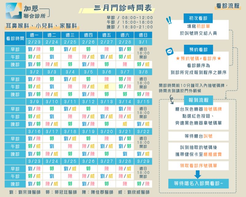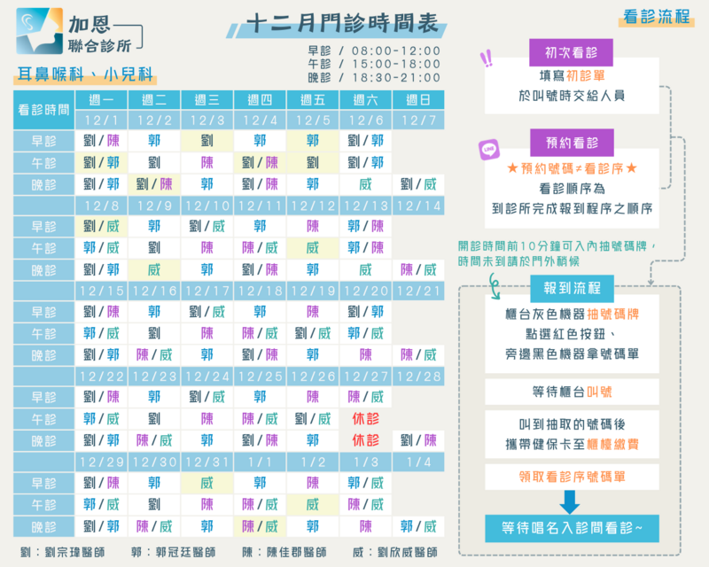 ◎敬請留意燈號,提前8個號碼入內候診,避免過號久候。