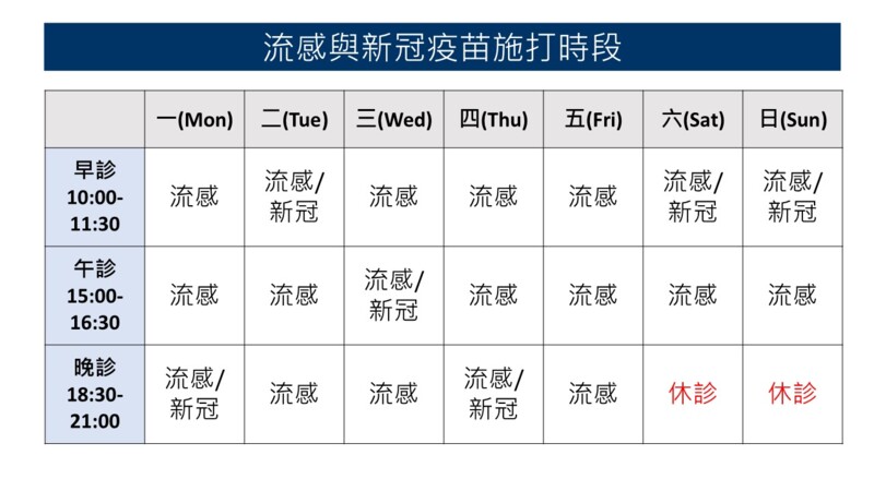 ✔️有需要施打的民眾,請盡量於以上時段前來施打(因同時有其他門診業務),謝謝您的配合。